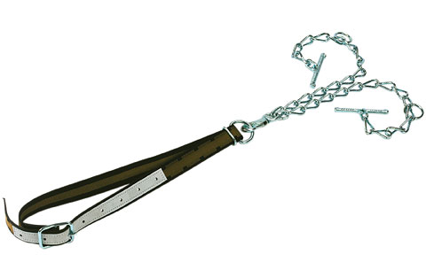 K125090 Rinderanbindung mit Halsband 130 x 4 cm mit D-Ring und verzinktem Kettenteil einfach mit Karabiner und Knebel, Gliedstärke 6 mm